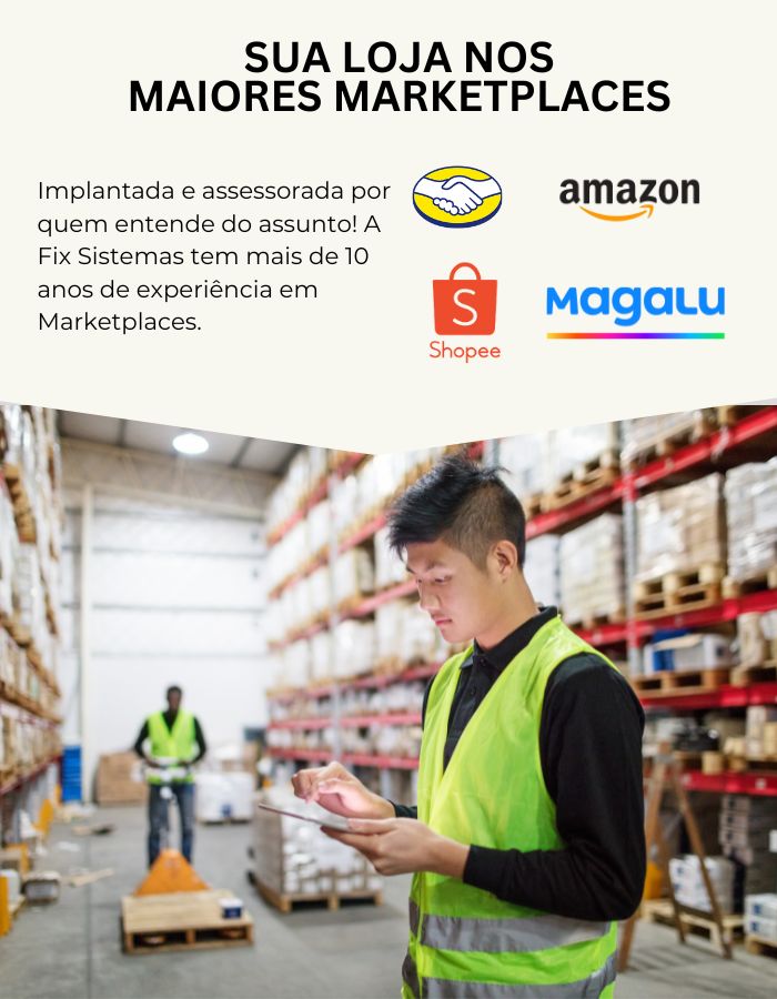 Cansado de lidar com a complexidade dos marketplaces e não ver seus produtos decolarem? A FIX SISTEMAS é a sua parceira ideal para dominar o universo do e-commerce. Especializados na implantação e manutenção de marketplaces como Mercado Livre, Amazon, Magazine Luiza, Shopee e outros, nós cuidamos de tudo para que você possa focar no que realmente importa: crescer seu negócio.